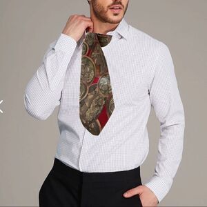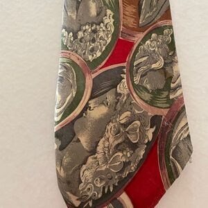 Vintage Marisap 100% silk 3” wide necktie with a rare ancient Roman Greek women & men medallion profiles pattern, handmade in Italy