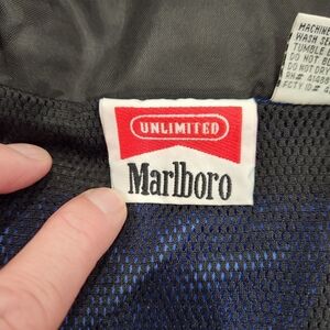 Vintage Marlboro Unlimited Jacket Mens Medium Blue Windbreaker Full Zip Hooded