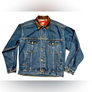 Here we have a very very hard piece to find. This jacket was purchased for me a very long time ago direct from the Marlboro catalog. It’s a Marlboro denim jacket with a leather collar pretty much new without tags. I wore it once and it has sat in my closet for many years. This was in the 90’s and you can Identify this by the fact it was made in Canada(higher quality) and not China like most of the later Marlboro stuff as they outsourced it to China.