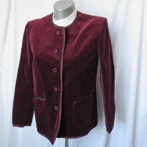 Vintage Maroon Velvet Velour Blazer Rope Trim