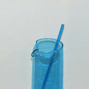 Gorgeous footed martini pitcher & stirrer. Stunning shade of blue with with clear base!