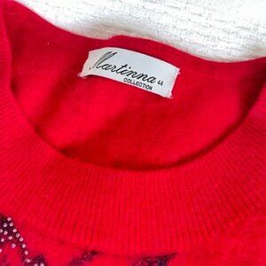 Vintage Martinna Collection Rhinestone Floral Cashmere Sweater Red