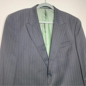 Vintage Massimo Moda Black Green Pinstriped Rayon Blend Mens Sport Coat Size 44