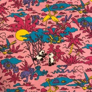 Fabric is adorable , colourful kitschy print with pandas , monkeys , snakes , ostrich birds the whole shebang !