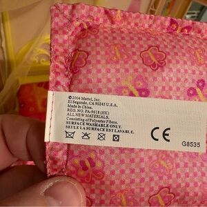 The pillow and blanket set are from a 2004 set I believe but they are branded Mattel .