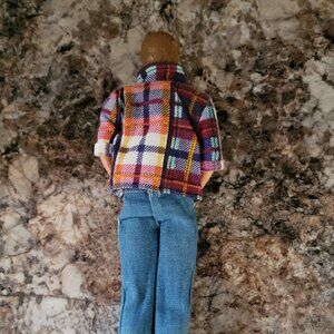 Ken is very good ( almost like new) vintage condition-dressed in a flannel shirt, jeans and a t shirt-measures 12 inches in height-come with frying pan and kettle-will be shipped via Purolator due to postal strike