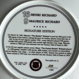 - Limited, signature edition collectors plate featuring the Richard Brothers (Maurice and Henri). Henri won the most Stanley Cups in NHL history (11).