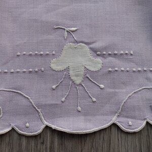 Vintage Mauve Tea Towel Napkin Fuchsia Flower Applique Light Pale Purple