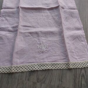 Monogrammed W vintage mauve ( light purple) tea towel / napkin.