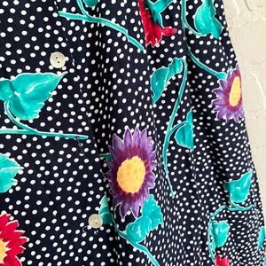 Vintage Maxi skirt Button down Navy Polka dot Dark Floral print Coquette 20W
