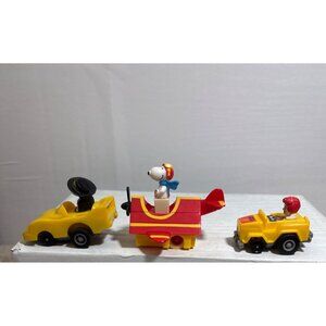 A collectible set of McDonald’s Happy Meal toys featuring Snoopy and his friends in vibrant yellow vehicles. Ideal for collectors or nostalgic enthusiasts.