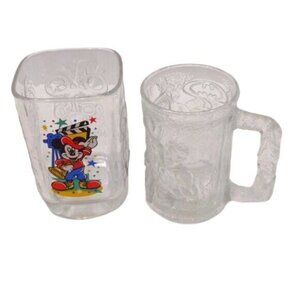 Vintage McDonald's Robin Batman Mug 1995 & Mickey Mouse Glass 2000 Clear Glass