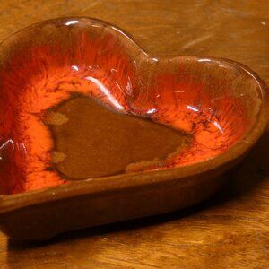 Vintage McMaster 1A glazed brown and orange heart shaped pottery trinket dish. This is a lovely retro piece with its earthy colours. In excellent preowned condition with no chips, cracks or wear to the finish. Made in Canada.