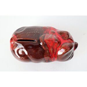 For your consideration is a vintage brown pottery pig bank with red drip highlights by McMaster Craft.