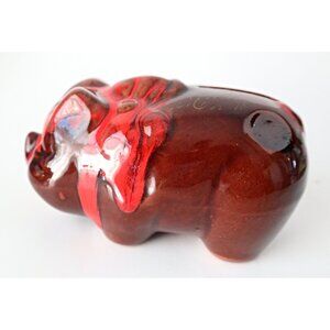 Vintage McMaster Craft Brown Pottery Pig Bank with Red Drip Glaze Souvenir of Wi