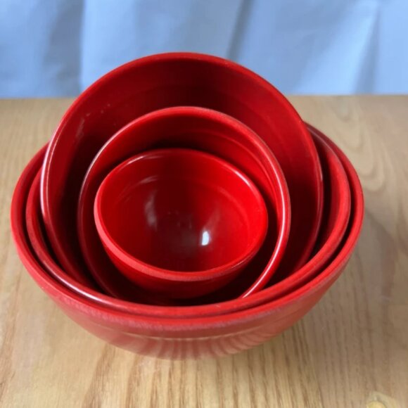 Vintage Measuring Set of 5 Nesting Mealmine Bowls - Betty Crocker Red
