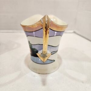 Vintage Meito Hand Painted Japan Blue White Gold Lusterware Sugar Creamer China