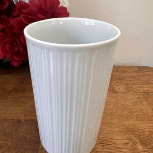Vintage Melitta Germany Milk Glass Vase Ribbed Mid Century White Wedding Decor