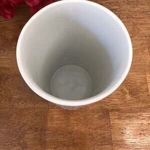 This classic vintage milk glass vase by Melitta Germany features a sleek cylindrical shape with finely ribbed vertical lines all around. Its minimalist design and luminous white finish make it an ideal piece for mid-century modern lovers, vintage collectors, or wedding decorators. A timeless and versatile piece of German glassware.