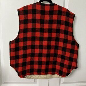 Vintage Melton Vest Mens Wool Buffalo Plaid red Black Lined Flawed Hunting Outdoor