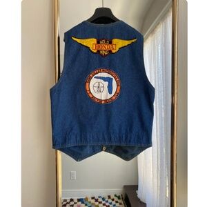 Vintage Mens Blue Denim Biker Vest • Daytona Bike Week 1991 • Sand Dollar Motorcycle Club • Honda Gold Wing Patch • Large