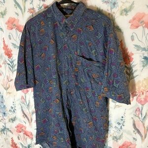 Elevate your casual look with this stylish geometric patterned blue shirt. Perfect for any occasion.