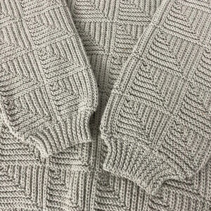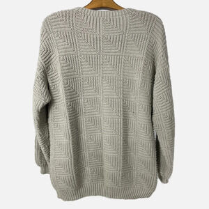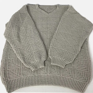 Vintage Men’s Hand Knit V-neck Sweater Large Light Gray Taupe Textured Cozy