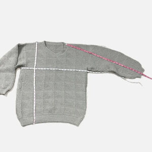 This is a vintage handmade knitted acrylic V-neck sweater in great pre-owned condition.