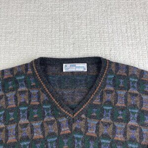 Vintage Men’s Jumper Sweater Italy Wool Blend Functionals Abstract AOP Read*