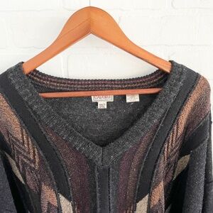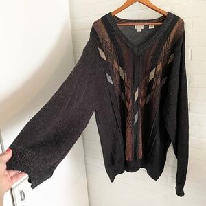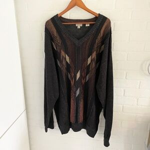 Vintage Men’s Knit Sweater Coogie style Wool blend Grandpa V neck Gray Brown 4X