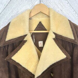 Vintage Mens Sheepskin Shearling Suede Coat Size 40 Brown Marlboro Man Ranch