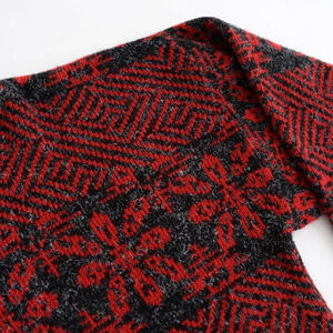 Vintage Men's Store 35% Wool Red Gray Eclectic Grandpa Knit Crewneck Sweater XLT