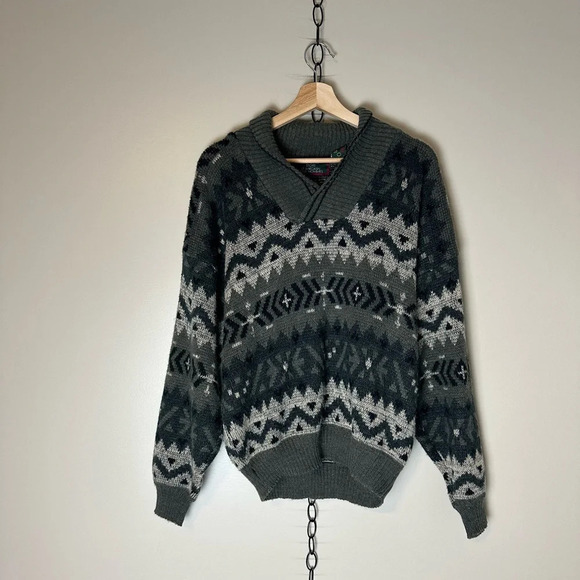 Vintage Men’s Store Abstract Swiped Swoop Neck Sweater Large