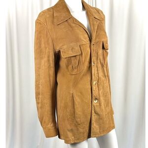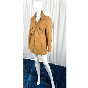 Vintage Men’s Suede Leather Shirt Jacket in Cognac Brown - Made in Canada - S/M