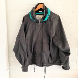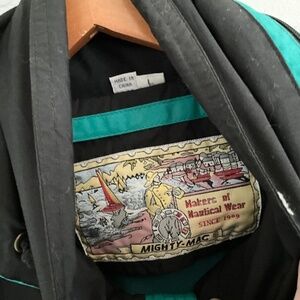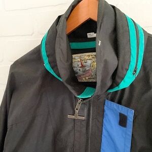Vintage Men’s Wind breaker Mighty Mac Hidden zip Black/Teal/Blue Pockets Sz L