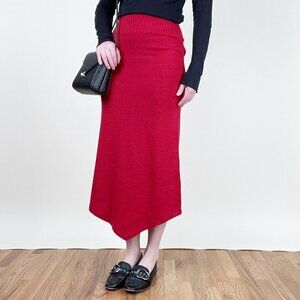 Vintage Merino Wool Column Midi Maxi Skirt Knit High Rise Long Casual Canadian