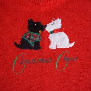 Vintage Merry Bright Red Embroidered Kissing Dogs Christmas Cheer Sweater PXL