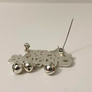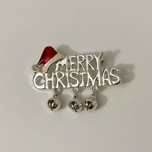Vintage Merry Christmas Brooch Jingle Bells Pin
