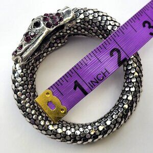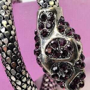 Vintage Mesh Purple Rhinestone 3 Coil Serpent SIlver Snake Bracelet