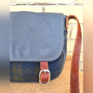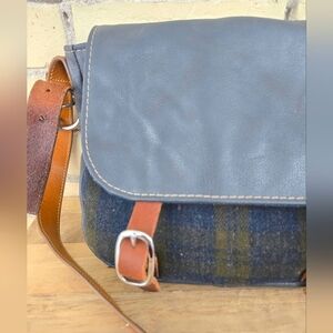 Vintage hand crafted leather and wool messenger bag.