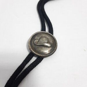 Vintage Metal Bolo Tie Cowboy Hat Rodeo Cowgirl Country Western Black