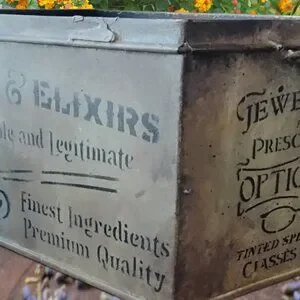 One more antique metal piece saved from the scrap yard! I love this old piece! Not sure what it was used for but it is lovely and old! I wanted to keep it a little more authentic with an old, weathered appearance, as tho' layers of paint had been faded away over time with a little "rust" creeping in. All hand painted and finished with some vintage typography. Sealed in clear and dark wax for further aging. A wonderful metal box perfect for storing books, magazines or fill up with your favorite flowers and plants!