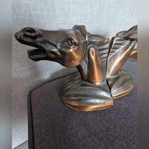 Vintage Metal Brass horse bookends, Excellent Condition show a rich patina