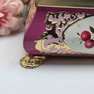 Vintage Metal Fricke & Nacke Tin Fruit Vanity Trinket Box Footed West Germany