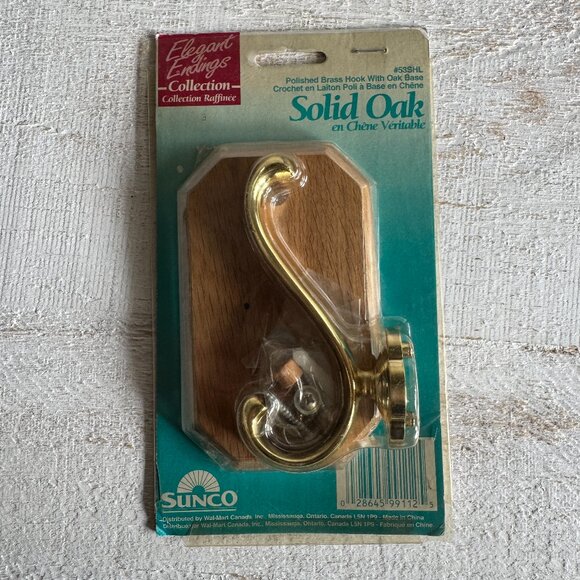 Vintage Metal Hook with Solid Oak Back Plate - New Old Stock