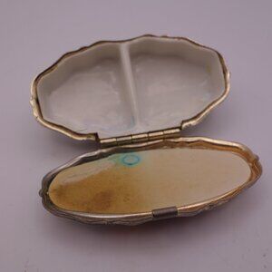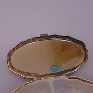 Vintage Metal Made in Japan Pill Box with Ceramic Top featuring Flower Design