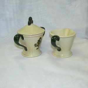 Vintage Metlox Poppytrail Creamer & Sugar Bowl Set Provincial Rooster Farm Decor