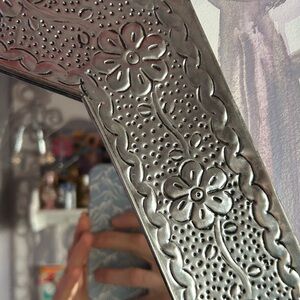 Vintage Mexican Tin Mirror Handcrafted - Hammered Hexagon