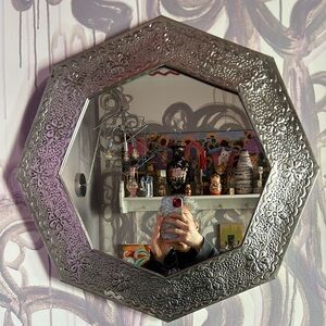 Mexican Tin Mirror Handcrafted - Hammered Hexagon - 21“ by 21“