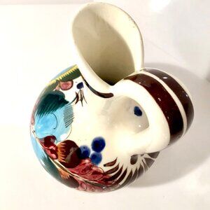 Vintage Mexican Tonala Hand Painted Pitcher. Signed PJ